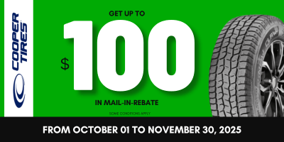 Take advantage of this exclusive offer and get up to $100 off on the purchase of eligible Cooper Tires. Choose from a selection of tires .