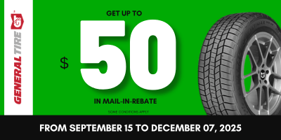 Take advantage of this special opportunity to save up to $50 on the purchase of 4 select General Tires
