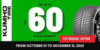 Don’t miss this special offer to save up to $60 on the purchase of eligible Kumho tires.