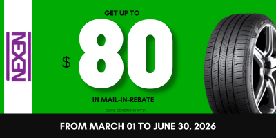 Take advantage of this exclusive online offer to get $80 off on the purchase of new eligible Nexen tires.