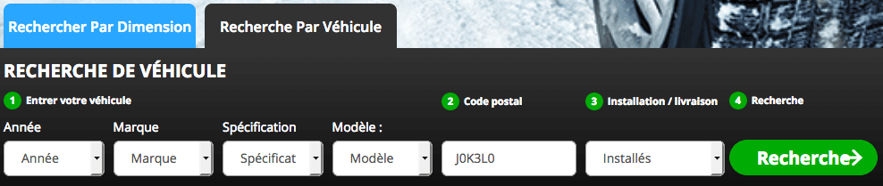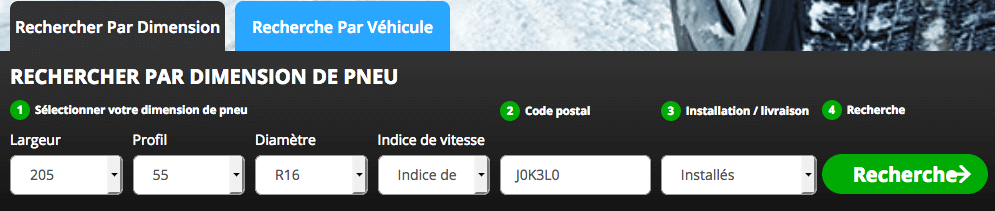 Si vous connaissez la dimension des pneus, veuillez entrer l’information dans l'outil de recherche, tel qu’indiqué ci-dessous.