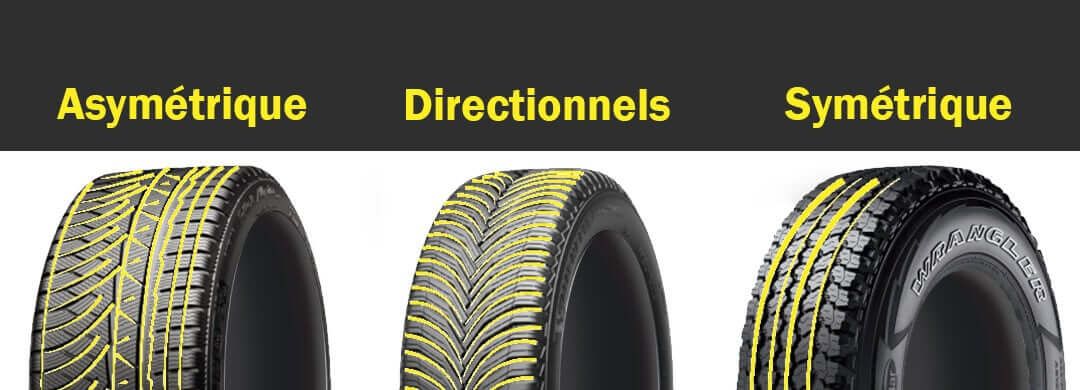 Si le flan du pneu est marqué d’une flèche, alors celui-ci est bien directionnel. Le motif de la bande de roulement de ces pneus est conçu pour rouler dans une direction spécifique.