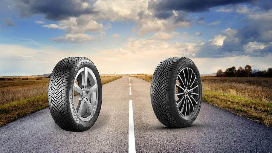 Faites votre choix entre le Continental All Season Contact et le Michelin Crossclimate 2