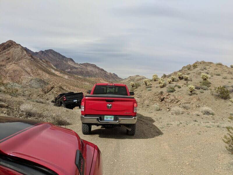 Montées escarpées, rochers abondants, angles latérales impressionnantes, le Power Wagon n’a eu peur de rien dans cette petite portion du désert de Red Rock Canyon. Le conducteur que je suis n’avais cependant pas la même bravoure, et j’avoue que le long capot (allongé sur le Power Wagon) ne rendait pas la visibilité facile. Dans une pente escarpée, j’ai heureusement pu compter sur le système d’aide à la descente pour me laisser aller, même sans voir précisément la direction vers laquelle je me dirigeais. Et je suis heureux de dire que je n’ai pas eu besoin du treuil de 12000 livres, offert de série sur le véhicule pour me tirer d’un mauvais pas.