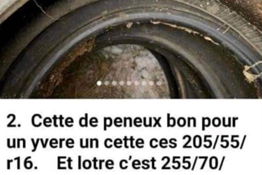Que vous parcouriez un des sites dédiés aux petites annonces comme Kijiji ou votre réseau social préféré, par exemple Facebook et son Marketplace, vous verrez sûrement apparaître une aubaine incroyable pour des pneus. Elles ne seront pas toutes aussi douteuses que celle en vignette de ce blog (à ce propos, si votre français n’est pas assez bon pour la comprendre, ne vous en faites pas, le mien non plus.) Cependant, toutes partagent ces inconvénients non négligeables!