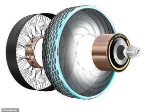 Quant à jante, oubliez les versions traditionnelles. Elles devront inclure le système d’injection de liquide prévu par GoodYear. Les experts en pneumatiques affirment que «la bande de roulement serait soutenue par un cadre léger et non pneumatique et une forme haute et étroite». On prétend aussi que cela rendra la vérification de la pression des pneus obsolètes, et les crevaisons impossibles.