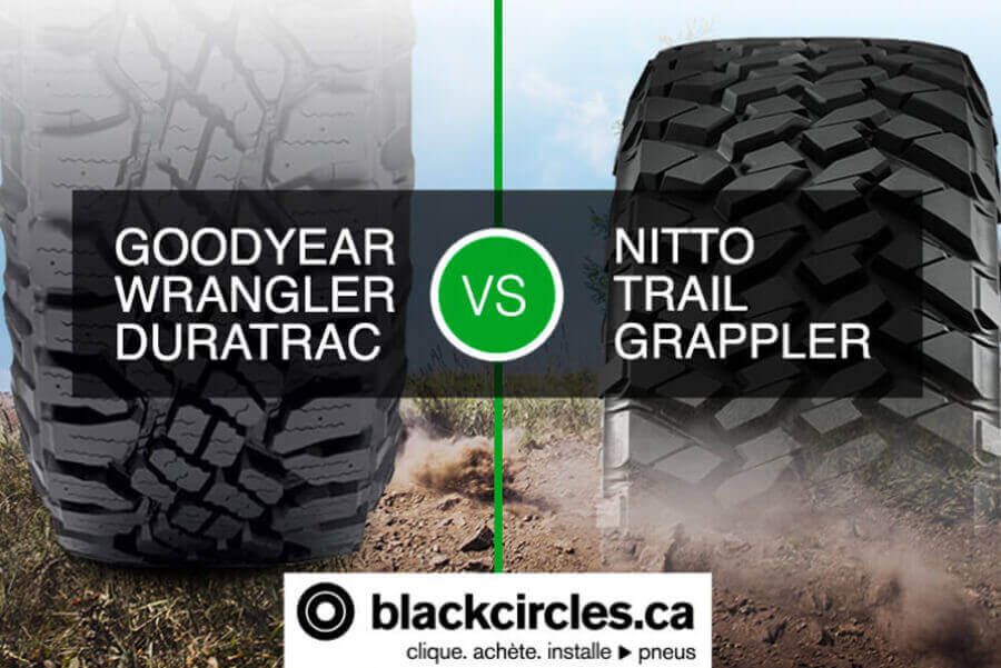 Bien entendu, il est logique de comparer le Wrangler DuraTrac à un autre pneu de prix et de catégorie similaires. Vous pouvez donc jeter un coup d’œil au Nitto Trail Grappler, une autre option dans cette catégorie. Afin de prendre la bonne décision, on vous conseille de comparer ces deux pneus face à face et d’évaluer leurs caractéristiques et leurs différences : le Goodyear Wrangler DuraTrac vs le Nitto Trail Grappler, lequel choisir?