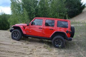 Bref, il faut savoir doser quand le moteur électrique assume la propulsion. Mais on s’y habitue rapidement. En revanche, quand le moteur 4 cylindres 2,0 litres turbo prend la relève, on est au volant d‘un Jeep Rubicon tout ce qu’il y a de traditionnel… et d’exceptionnel hors route. Je l’ai déjà dit, mais le répète sans hésiter : rouler dans des conditions difficiles me satisfait autant, sinon plus, que de prendre le volant d’une puissante voiture sur une piste. Et le Rubicon, aussi électrifié soit-il est exactement le véhicule pour le faire.