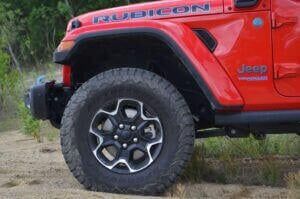 Précisons tout de suite que le Jeep Wrangler est équipé pour les sentiers ardus. Il dispose de pneus BF Goodrich KO2 capable de le mener aux plus grands extrêmes. Car rappelons-le, il s’agit vraiment d’un Wrangler Unlimited. Comme tous les Jeep qui se respectent, il est doté d’un rouage 4 roues motrices à gammes haute et basse sélectionnables manuellement. Le différentiel verrouillable et la capacité de déconnecter les barres antiroulis pour augmenter le débattement des suspensions favorisent aussi le passage sur, littéralement, n’importe quel obstacle.
