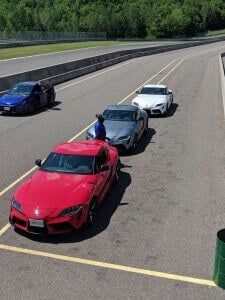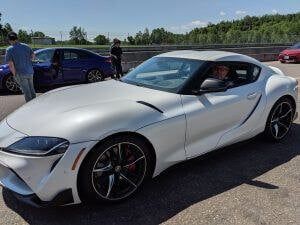 Il faut dire que la Supra, avec ses 335 chevaux issus du moteur 6 cylindres en ligne de 3 litres (et ses 365 livres-pied de couple transmis par une boite automatique – non pas de manuelle – à 8 rapports), se démène avec aisance sur la piste.