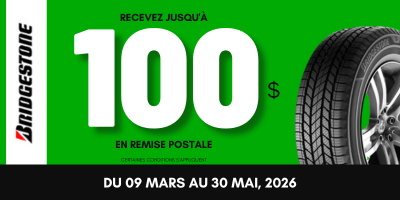Bénéficiez d’une remise postale de jusqu'a 100 $ sous forme de carte prépayée Visa Bridgestone
