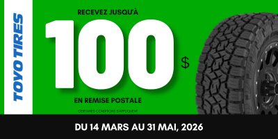 Ne manquez pas cette opportunité unique pour économiser jusqu'à 100 $ sur l'achat de pneus Toyo éligibles.