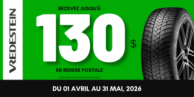 Profitez de cette offre exceptionnelle pour économiser jusqu'à 130 $ lors de l'achat de 4 pneus Vredestein éligibles.